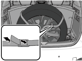 Secure the flat tire in the luggage compartment using the flat tire belt.