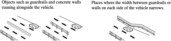 If the road width is extremely narrow, vehicles two lanes over may be detected. The detection area of the radar sensors (rear) is set according to the road width of expressways.