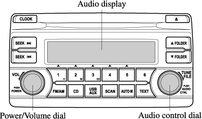 Switch the ignition to ACC or ON. Press the power/volume dial to turn the audio system on. Press the power/volume dial again to turn the audio system off.