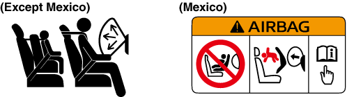 The front and side supplemental restraint systems (SRS) include different types of air bags. Please verify the different types of air bags which are equipped on your vehicle by locating the “SRS AIRBAG” location indicators. These indicators are visible in the area where the air bags are installed.