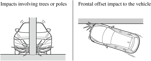 The following illustrations are examples of front/near front collisions that may not be detected as severe enough to deploy the SRS air bag equipment.