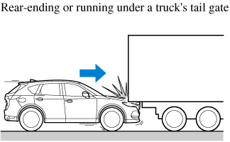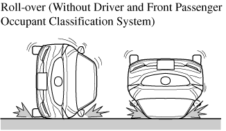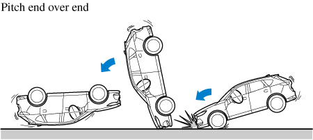 The following illustration is an example of an accident that may not be detected as a roll-over accident. Therefore, the front seat belt pretensioners and curtain air bags may not deploy.