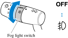 The fog lights can be turned on with the ignition switched ON and the headlights turned on.