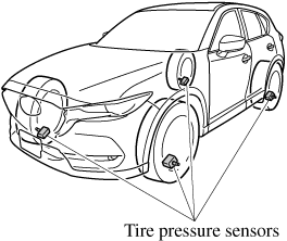 The tire pressure sensors installed on each wheel send tire pressure data by radio signal to the receiver unit in the vehicle.