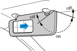 To prevent the battery from being discharged, the vanity mirror will only illuminate in the tilt range shown in the figure.