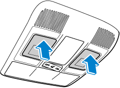 When the overhead light switch is in the door or off position, press the lens to illuminate the front map lights, and then press the lens again to turn them off.