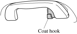 Never hang heavy or sharp objects on the assist grips and coat hooks: