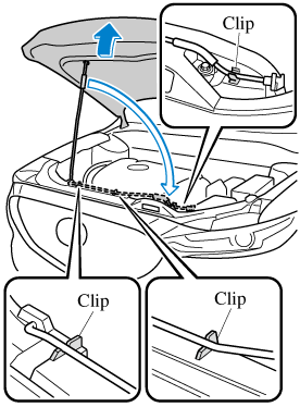 When closing the hood, do not push it excessively such as by applying your weight. Otherwise, the hood could be deformed.