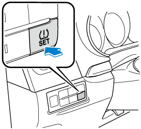 4. Press and hold the tire pressure monitoring system set switch and verify that the tire pressure monitoring system warning light in the instrument cluster flashes twice and a beep sound is heard once.