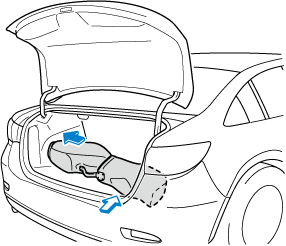 Place each of the three golf bags into the luggage compartment with the bottom of each bag pointed to the left, and then set the top of each bag so that it is pointed to the right.