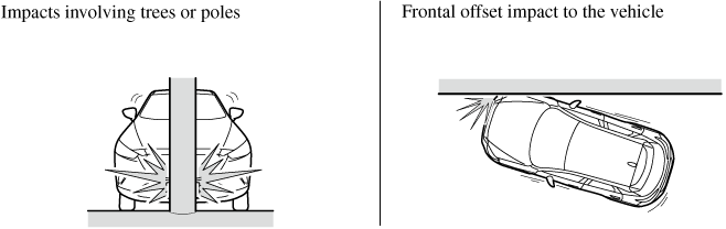 The following illustrations are examples of front/near front collisions that may not be detected as severe enough to deploy the SRS air bag equipment.