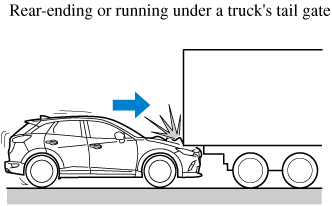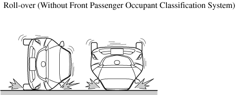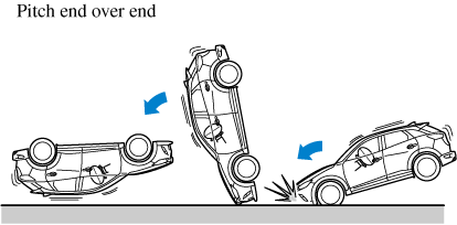 The following illustration is an example of an accident that may not be detected as a roll-over accident. Therefore, the front seat belt pretensioners and curtain air bags may not deploy.