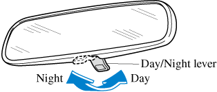 Push the day/night lever forward for day driving. Pull it back to reduce glare of headlights from vehicles at the rear.