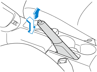 Depress the brake pedal and pull the parking brake lever upwards, then press the release button. While holding the button, lower the parking brake lever all the way down to the released position.