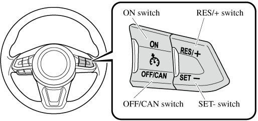 If your Mazda has the following steering switch, your Mazda is equipped with the Mazda Radar Cruise Control (MRCC) system.