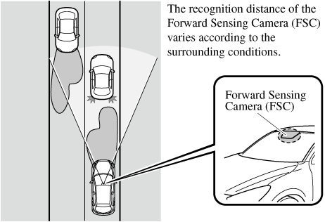 The HBC determines the conditions in front of the vehicle using the Forward Sensing Camera (FSC) while driving in darkness to automatically switch the headlights between high and low beams.