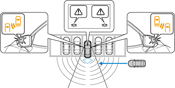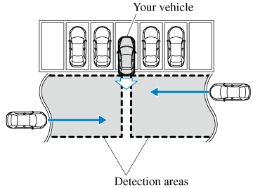 The RCTA system detects vehicles approaching from the left and right sides of the vehicle, and the rear of the vehicle while the vehicle is being reversed out of a parking space, and notifies the driver of possible danger using the Blind Spot Monitoring (BSM) warning indicator lights and the warning buzzer.