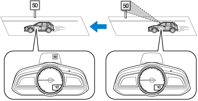 The TSR helps prevent the driver from overlooking traffic signs and provides support for safer driving. Depending on the weather conditions or problems with traffic signs, a traffic sign may not be recognized or a traffic sign different from the actual traffic sign may be displayed. Always make it your responsibility as a driver to check the actual traffic signs. Otherwise, it could result in an accident.
