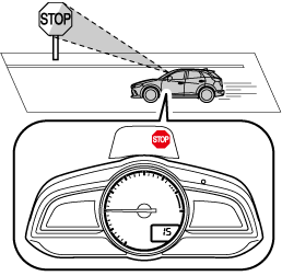 The TSR helps prevent the driver from overlooking traffic signs, and provides support for safer driving by displaying traffic signs on the active driving display which are recognized by the Forward Sensing Camera (FSC) or recorded in the navigation system while the vehicle is driven.