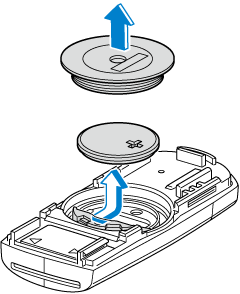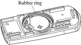 • If the rubber ring detaches, reattach it before inserting a new battery.