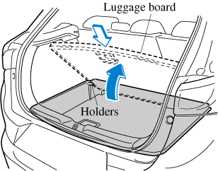 Pull the luggage board outward a little and insert the opposite end into the holders so that the luggage board stands.