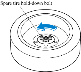 For vehicles not equipped with a sub-woofer, turn the spare tire hold-down bolt counterclockwise and remove the spare tire.