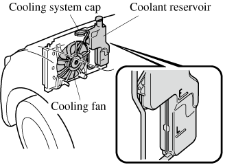 If the cooling fan does not operate while the engine is running, the engine temperature will increase. Stop the engine and call an Authorized Mazda Dealer.