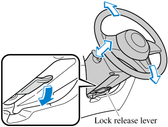 Stop the vehicle, and then pull down the lock release lever under the steering column.