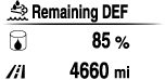 If the remaining amount of DEF is low or there is a problem with the Selective Catalytic Reduction (SCR) system and there is less maximum remaining driving distance, the remaining-distance-to-empty indication is continuously displayed.