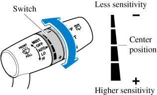 From the center position (normal), rotate the switch upward for higher sensitivity (faster response) or rotate it downward for less sensitivity (slower response).