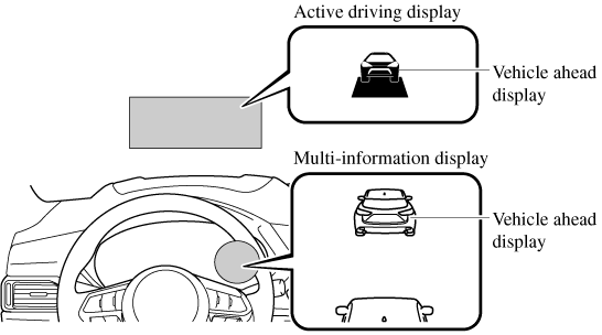The DRSS operation status is indicated in the active driving display or multi-information display. Regarding malfunctions, check the vehicle conditions or have it inspected by an Authorized Mazda Dealer according to the content of the displayed message.