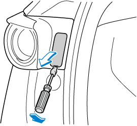 If you are changing the right bulb, start the engine, turn the steering wheel all the way to the left, and turn off engine. If you are changing the left bulb, turn the steering wheel to the right.