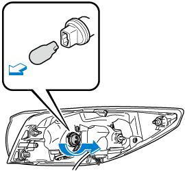 Turn the socket and bulb assembly counterclockwise and remove it.