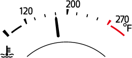If the engine load increases and the engine coolant temperature exceeds 100 °C (210 °F), the gauge indicates the engine coolant temperature.