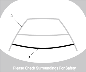 The guide lines on the screen are fixed lines. They are not synced to the driver's turning of the steering wheel. Always be careful and check the area to the vehicle's rear and the surrounding area directly with your eyes while backing up.