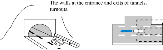 Under the following conditions, the radar sensors (rear) cannot detect target objects or it may be difficult to detect them.