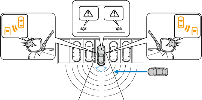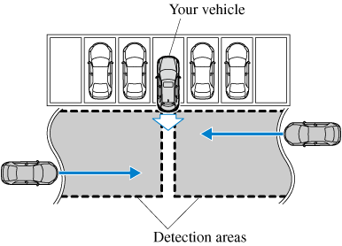 The RCTA system detects vehicles approaching from the left and right sides of the vehicle, and the rear of the vehicle while the vehicle is being reversed out of a parking space, and notifies the driver of possible danger using the Blind Spot Monitoring (BSM) warning indicator lights and the warning buzzer.