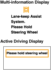 If the driver takes his or her hands off the steering wheel (not holding the steering wheel), the warning sound is activated and an alert is indicated in the multi-information display or the active driving display.