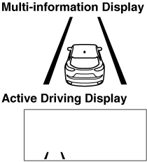 When the LAS&LDWS becomes operational while on standby, the vehicle lane lines are displayed in the multi-information display and the active driving display. In the vehicle lane lines display indicating the operation status, the color of the vehicle lane lines being detected changes to white.