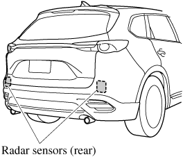 • For repairs or replacement of the radar sensors (rear), or bumper repairs, paintwork, and replacement near the radar sensors, consult an Authorized Mazda Dealer.