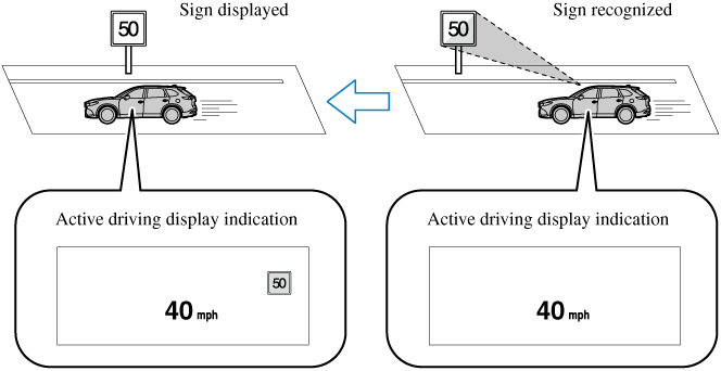 If the vehicle speed exceeds the speed limit sign indicated in the active driving display while the vehicle is driven, the system notifies the driver using the indication in the active driving display and a warning sound.