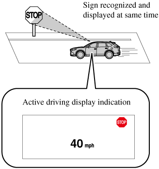 The TSR helps prevent the driver from overlooking traffic signs, and provides support for safer driving by displaying traffic signs on the active driving display which are recognized by the Forward Sensing Camera (FSC) or recorded in the navigation system while the vehicle is driven.