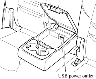 • To prevent discharging of the battery, do not use the USB power outlets for long periods with the engine off or idling.