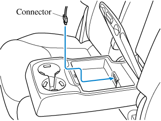 2. Route the cord through the groove in the armrest box and insert the USB connector into the USB power outlets.