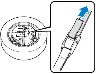 When pulling the flat tire belts, wrap the buckle with a cloth. If the buckle directly contacts the aluminum wheel, the wheel may be damaged.