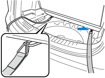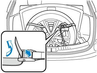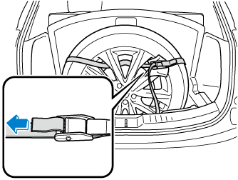 Secure the flat tire in the luggage compartment using the flat tire belt.