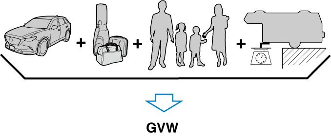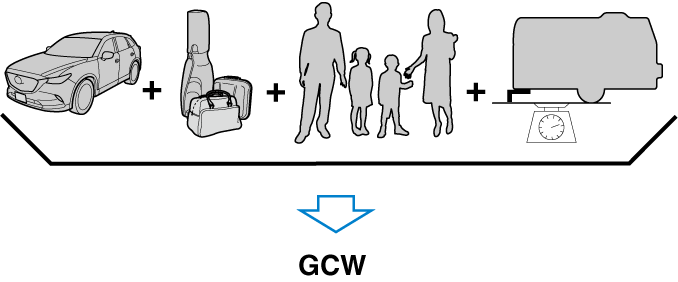 GCWR (Gross Combination Weight Rating) is the maximum allowable weight of the vehicle and the loaded trailer - including all cargo and passengers - that the vehicle can handle without risking damage. (Important: The towing vehicle's braking system is rated for operation at GVWR, not at GCWR. Separate functional brakes should be used for safe control of towed vehicles and for trailers weighing more than 1,500 lbs). The GCW must never exceed the GCWR.