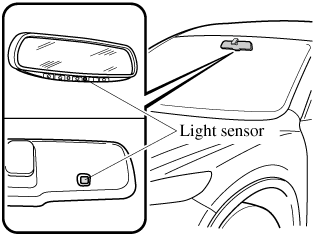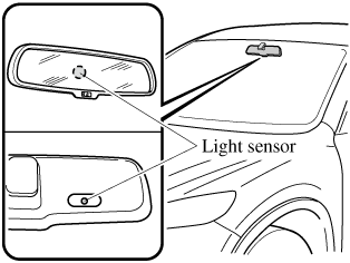 The auto-dimming mirror automatically reduces the glare of headlights from vehicles at the rear when the ignition is switched ON.