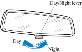 Push the day/night lever forward for day driving. Pull it back to reduce glare of headlights from vehicles at the rear.