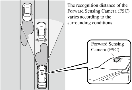 The HBC determines the conditions in front of the vehicle using the Forward Sensing Camera (FSC) while driving in darkness to automatically switch the headlights between high and low beams.